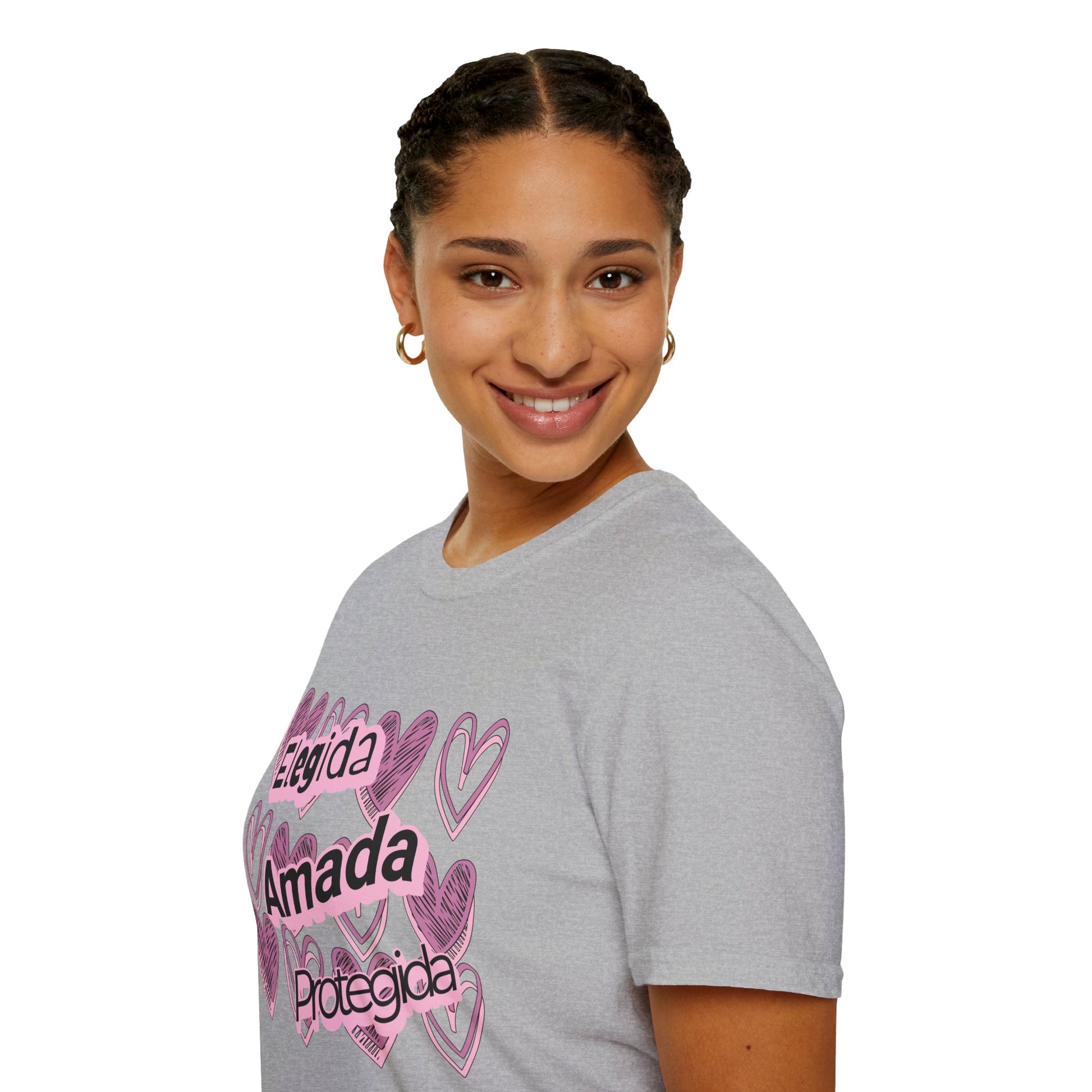 Suave, sencilla y discretamente inspiradora, esta camiseta ligera transmite un mensaje tierno envuelto en corazones dibujados a mano. Elegida. Amada. Guardada. se lee como un recordatorio personal—arraigado en la identidad, el sentido de pertenencia y la certeza de que somos sostenidos por el amor de Dios.